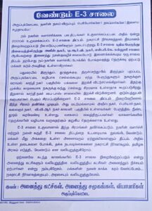 அருப்புக்கோட்டையில் அமைக்க உள்ள E-3சாலையின் நிலை என்ன.?