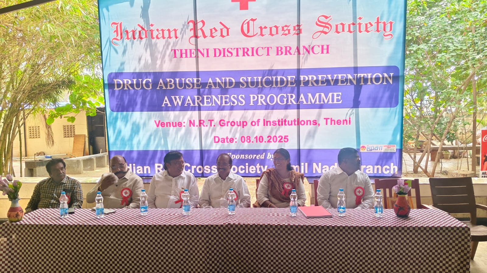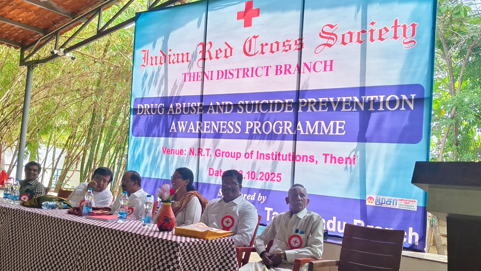 தேனி மாவட்ட இந்தியன் ரெட் கிராஸ் சொசைட்டி சார்பில் தற்கொலை தடுப்பு மற்றும் போதைப்பொருள் தடுப்பு விழிப்புணர்வு நிகழ்வு தேனி,என்.ஆர்‌டி.கல்வி நிறுவன வளாகத்தில் சிறப்பாக நடைபெற்றது.இந்தியன் ரெட் கிராஸ் சொசைட்டி சேர்மன் மற்றும் என்.ஆர்.டி. கல்வி நிறுவனங்களின்தாளாளருமானமரு.என்.ஆர்.டி.ஆர்.தியாகராஜன் அவர்கள் தலைமை தாங்கினார்.ரெட் கிராஸ் கௌரவச் செயலாளர் திரு.சுருளிவேல் அவர்கள் வரவேற்புரை வழங்கினார்.தேனி மாவட்ட மருத்துவப் பணிகள் இணை இயக்குனர் மருத்துவர் அன்புச் செழியன் அவர்கள் சிறப்பு விருந்தினராக கலந்து கொண்டு கருத்தரங்கை துவக்கி வைத்தார்.பிரபல மனநல மருத்துவர் ரூத் மனோரஞ்சன் அவர்கள் மனநலம் மற்றும் தற்கொலைத் தடுப்பு எனும் தலைப்பில் விரிவாக பேசினார். நிகழ்வில் ரெட் கிராஸ் துணை சேர்மன் மகாராஜன், பொருளாளர் முகமது ஷேக் இப்ராஹிம், என்.ஆர்.டி. கல்லூரி முதல்வர் திரு.விஜய், செயல் அலுவலர் திருமதி.ஹேமா, ரெட்கிராஸ் ஆயுள் உறுப்பினர்கள் கலந்து கொண்டு சிறப்பித்தனர்.இந்நிகழ்வில் சுமார் 600 மாணவ மாணவியர்கள் கலந்து கொண்டு பயன்பெற்றனர். ஆண்டிபட்டி செய்தியாளர் வேல்முருகன்