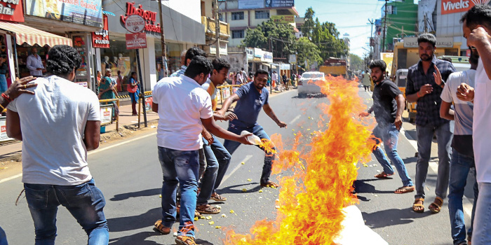 கேரளாவில் உள்ள சபரிமலை ஐயப்பன் கோவிலில் அனைத்து வயது பெண்களும் செல்வதற்கு அனுமதி வழங்கியதை எதிர்க்கும் வகையில் கேரளா முழுவதும் எதிர்க்கட்சிகள் போராட்டம் நடத்தி வந்தனர்.