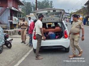 இச்சோதனைகளின் போது வாகன ஓட்டிகளிடம் தேவையான ஆவணங்கள் சரிபார்க்கப்பட்டதுடன், சந்தேகத்துக்கிடமான பொருட்கள் இருந்தால் அவை பறிமுதல் செய்யப்படும் என்றும் அதிகாரிகள் எச்சரிக்கை விடுத்துள்ளனர். தேர்தல் ஒழுங்கு விதிமுறைகள் முறையாக பின்பற்றப்படுகிறதா என்பதை உறுதி செய்வதே இந்த நடவடிக்கையின் நோக்கமாகும்.மேலும், பொதுமக்கள் தேர்தல் விதிமுறைகளை மதித்து ஒத்துழைக்க வேண்டும் என்றும், சட்டவிரோத நடவடிக்கைகள் குறித்து உடனடியாக தகவல் அளிக்க வேண்டுமெனவும் அதிகாரிகள் கேட்டுக்கொண்டுள்ளனர். வால்பாறை முழுவதும்ஔ பாதுகாப்பு மற்றும் கண்காணிப்பு நடவடிக்கைகள் தொடர்ந்து வலுப்படுத்தப்பட்டு வருகின்றன.. கோவைமாவட்ட புகைபட கலைஞர் ஜெயப்ரகாஷ் தே