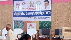 தேனி மாவட்டம் உணவுப் பொருள் மற்றும் நுகர்வோர் பாதுகாப்புத் துறையின் சார்பில் சிறு தானிய உணவுத் திருவிழா !!! தேனி மாவட்டம் தேனி என்.ஆர்.டி மக்கள் மன்றத்தில் 14/12/2023 இன்று காலை 10.00மணியளவில்மாவட்டஆட்சியர் ஆர்.வி.சஜுவனா தலைமையில், பொதுமக்கள், அனைத்துத் துறை அலுவலர்கள், நுகர்வோர் மன்றங்கள் மற்றும் மாணவ, மாணவியர்கள், சிறுதானியங்கள் மூலம் தயாரிக்கப்பட்ட பல்வேறு அமைப்புகள் கலந்து கொண்ட அரங்குகளுடன் வெகு சிறப்பாகநடைபெற்றதன்நிகழ்ச்சி………………………….. யூனியன் ஆஃப் பிரஸ் மீடியா கம்யூனிகேஷன் மாநில அமைப்புச் செயலாளர் ,அரசு செய்தி தேனி மாவட்ட செய்தியாளர் – அ.ந.வீரசிகாமணி.
