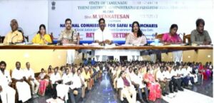 தேனி மாவட்டம் தேனி மாவட்ட ஆட்சியர் அலுவலக கூட்டரங்கில் தூய்மை பணியாளர்கள் பணித்திறன்குறித்த ஆய்வு கூட்டம் தேசிய தூய்மை பணியாளர் மேம்பாட்டு ஆணைய தலைவர் எம்.வெங்கடேசன் தலைமையில், மாவட்ட ஆட்சித் தலைவர் ஆர்,வி.ஷஜீவனா இ.ஆ.ப, முன்னிலையில் நடைபெற்றது, தூய்மை பணியாளர்களுக்கு ஒரே மாதிரியான ஊதியத்தை வழங்குவதற்கான நடவடிக்கைகளை நகராட்சி மற்றும் பேரூராட்சி அலுவலர்கள் மேற்கொள்ள வேண்டும், மேலும் பணியாளர்களின் பணிப்பதிவேடு, பணி மூப்பு வரண்முறைப்படுத்துதல் போன்ற அலுவலக ரீதியான பணிகளை அலுவலர்கள் பாரபட்சமின்றி மேற்கொள்ள வேண்டும் என கேட்டுக்கொண்டார், இக்கூட்டத்தில் மாவட்ட காவல் கண்காணிப்பாளர் பிரவீன் உமேஜ் டோங்கரே இ.கா.ப,மாவட்ட ஊரக வளர்ச்சி முகமை திட்டஇயக்குனர் மதுமதி, ஆதிதிராவிடர் மற்றும் பழங்குடியினர் நல அலுவலர் சசிகலா, உதவிஆணையர் (கலால்) ரவிச்சந்திரன், உதவி இயக்குனர் (ஊராட்சிகள்) அண்ணாதுரை, பாலசுப்ரமணியன் (பேரூராட்சிகள்) நகராட்சி ஆணையாளர்கள், தேசிய தூய்மை பணியாளர் மேம்பாட்டு ஆணய நலக்குழுஉறுப்பினர்கள் உட்பட பலர் கலந்து கொண்ட நிகழ்ச்சி…………………….. தேனி மாவட்ட செய்தியாளர் – அ.ந.வீரசிகாமணி