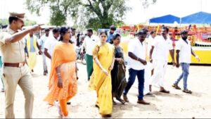 கௌமாரியம்மன் திருக்கோவில் சித்திரை பெருந்விழாவில் நடைபெற உள்ளதையொட்டி மேற்கொள்ளப்பட்டது மாவட்ட ஆட்சியாளர் ஆ.வி.சஜீவனா.இ.ஆ.ப.அவர்கள் பார்வையிட்டு ஆய்வு மேற்கொண்டார், உடன் வீரபாண்டி பேரூராட்சி தலைவர் கீதாசசி உடன் இருந்தார்.