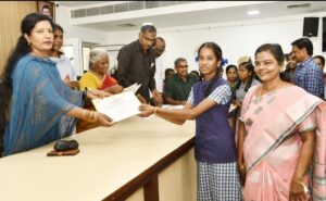 தேனி மாவட்ட ஆட்சியகரத்தில் நடைபெற்ற மக்கள் குறை தீர்க்கும் நாள் கூட்டத்தில் பள்ளி கல்வித்துறை மற்றும் சமூக நலன் மற்றும் மகளிர் உரிமைத் துறை இணைந்து நடத்திய பெண் குழந்தைகளுக்கான அறிவியல் கண்காட்சி 2024- 25 வெற்றி பெற்ற பள்ளி மாணவியர்களுக்கு மாவட்ட ஆட்சித் தலைவர் ஆர் வி ஷஜீவனா அவர்கள் பரிசுத்தொகை மற்றும் பாராட்டுச் சான்றிதழ்களை வழங்கினார்கள்