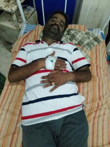 குதல். தாக்கப்பட்டதில் உடலில் பல்வேறு இடங்களில் காயம் தயாளன் என்பவர் தேனி மருத்துவ கல்லூரி அரசு மருத்துவமனையில் அனுமதி. கம்பம் தெற்குதிமுக செயலாளர் உட்பட 6 பேர்மீது கம்பம் தெற்கு காவல் துறையினர் வழக்கு பதிவு விசாரணை நடத்தி வருகின்றனர். FIR 289/22 dt 13/9/22