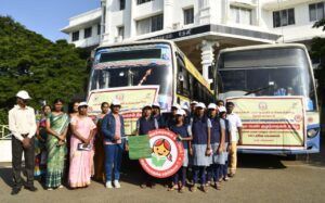 தேனி மாவட்ட தேனி மாவட்ட ஆட்சியரகத்தில் சர்வதேச பெண் குழந்தைகள் தினத்தை முன்னிட்டு சமூக நலம் மற்றும் மகளிர் உரிமைத்துறையின் சார்பில் பெண் குழந்தைகள் காப்போம் பெண் குழந்தைகளை கற்பிப்போம் திட்டத்தின் பட்டறிவு பயணமாக கீழடி அகழ்வராய்ச்சி நிலையம் மற்றும் மதுரை கலைஞர் நூற்றாண்டு நூலகம் ஆகிய இடங்களுக்கு செல்லும் பள்ளி விடுதி மாணவிகளை மாவட்ட ஆட்சித் தலைவர் ஆர். வி. ஷஜீவனா அவர்கள் வழி அனுப்பி வைத்தார்கள்.