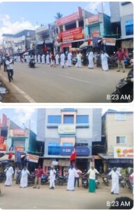 திருவாரூர் மாவட்டம் நீடாமங்கலம் 08.10.2024 காலை 10.30 மணியளவில் நீடாமங்கலத்தில் அதிமுக சார்பில் ஆளும் திமுக அரசை கண்டித்து விலைவாசி உயர்வு கண்டித்தும் முன்னாள் பேரூராட்சி மன்றத் தலைவர் செந்தமிழ் செல்வன் MR தலைமையில் மனித சங்கிலி போராட்டம் நடைபெற்றது நகர தலைவர் ஷாஜகான் லஸ்கர் ராஜேந்திரன் பால் சரவணன் ஏராளமான தொண்டர்கள் கலந்து கொண்டனர்..