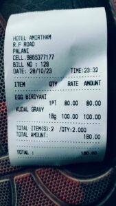 பழனிபஸ்ஸ்டாண்டுஅருகில் உள்ள அமிர்தம்ஓட்டலில்கெட்டுபோனபிரியாணியும் பீப்குடலையும் கொடுத்து உணவுசாப்பிடுகிறவர்களை ஏமாற்றி பணம் வசூல் ? எல்லாம் தெரிந்த அதிகாரிகள் மவுனம் உணவுபாதுகாப்பு  துறைஅதிகாரிகள்என்னசெய்கிறார்கள்?  உணவுசாப்பிட்டவர்கள்வாந்தி மயக்கம்..?