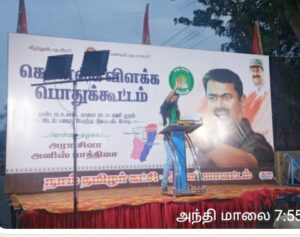 தேனி மாவட்டம் போடி நகரில் பழைய பேருந்து நிலையம் அருகில் நாம் தமிழர் கட்சி சார்பாக கொள்கை விளக்க பொதுக்கூட்டம் நடைப்பெற்றது கொள்கை முழக்கம் அரா சிவா மற்றும் அனிஸ்டன் பாத்திமா இந்த கொள்கை விளக்க பொதுக்கூட்டத்தில் மாநில மாவட்ட ஒன்றிய நகர அனைத்து பிரிவு நிர்வாகிகள் கலந்து கொண்டனர்
