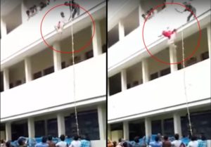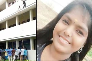 அப்போது பயிற்சியாளர் ஆறுமுகம் அதே கல்லூரியில் பிபிஏ இரண்டாம் ஆண்டு படித்து வந்த மாணவி லோகேஸ்வரியை இரண்டாம் மாடியில் இருந்து குதிக்க வலியுறுத்தினார் அதற்கு அந்த மாணவி தயக்கம் காட்டியதால் பயிற்சியாளர் ஆறுமுகம் மாணவியை கீழே தள்ளி விட்டுள்ளார்.