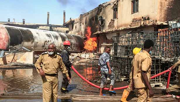 சூடானின் தலைநகரான கார்தோமில் தொழிற்ச்சாலை ஒன்று அமைந்துள்ளது , அப்போது திடீரென கேஸ் நிரப்பப்பட்ட டேங்கர் லாரி ஒன்று தீப்பிடித்து வெடித்து சிதறியது.