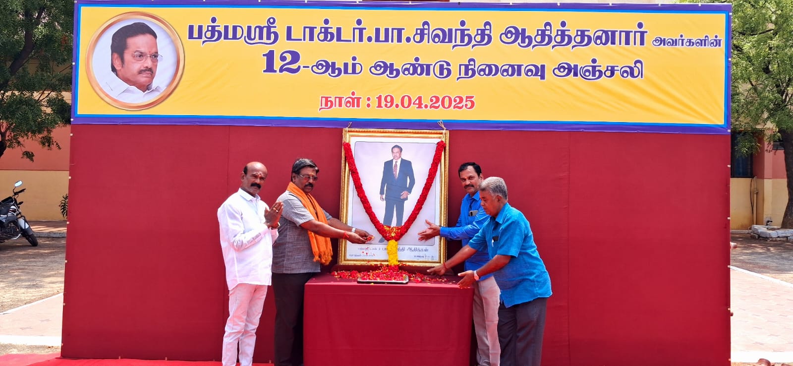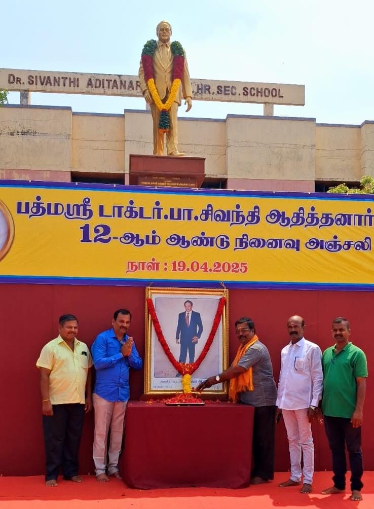 தினத்தந்தி அதிபரும், இந்திய ஒலிம்பிக் சங்க தலைவராக இருந்தவரும் கல்வி , ஆன்மீக வளர்ச்சிக்கு பேரு உதவி புரிந்த இரண்டாம் பராக்கிரம பாண்டியன் என்று பெயர் பெற்றபா . சிவந்தி ஆதித்தனார் அவர்களின் 12 வது நினைவு நாளை முன்னிட்டு செங்குன்றம் அருகே உள்ள சிவந்தி ஆதித்தனார் மெட்ரிக் மேல்நிலைப்பள்ளி வளாகத்தில் உள்ள சிவந்தி ஆதித்தனார் முழு உருவ சிலைக்கு மாலை அணிவித்து மரியாதை செய்யப்பட்டது.