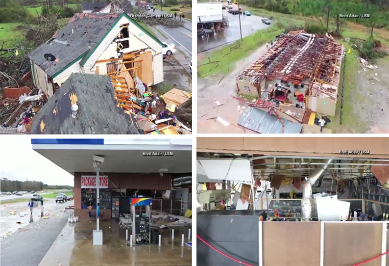 கிழக்கு அலபாமாவின் லீ பிராந்தியத்தில் ஏற்பட்ட டோர்னாடோ என்ற சுழிக்காற்று மணிக்கு 266 கிலோமீட்டர் வேகத்தில் வீசி பலரின் வீடுகளையும் , உடமைகளையும் நாசப்படுத்தியுள்ளது.மேலும் பலரின் வீடுகளின் மேல்கூரையும், பல வாகனங்களும் காற்றில் பறந்தது.