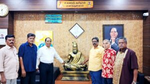 மலேசியாவில் இருந்து சென்னை வந்துள்ள முன்னாள் சர்வதேச சிலம்ப சம்மேள செயலாளர். மாசிலாமணி, வி. ஜி. பி. உலக தமிழ் சங்க தலைவர். வி. ஜி. சந்தோஷத்தை அவரது அலுவலகத்தில் சந்தித்து பொன்னாடை போர்த்தி வாழ்த்து பெற்றார்.உடன் தமிழ்நாடு சிலம்பாட்ட கழக நிறுவன செயலாளர். அமானுல்லா, உலக சிலம்ப ஆசான்கள் மற்றும் ஆசிரியர்கள் ஒருங்கிணைந்த சங்க செயலாளர்.கலை முதுமணி. ஆர். முருககனி, உள்பட பலர் உள்ளனர்.