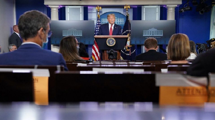 அமெரிக்காவில் அதிபர் ட்ரம்ப் பத்திரிக்கையாளர்களுக்கு பேட்டி அளித்து வந்த போது திடீர் துப்பாக்கி சூடு நடந்த சம்பவம் பரபரப்பை ஏற்படுத்தியுள்ளது.