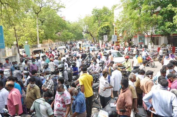 பல இடங்களில் மக்கள் சமூக விலகலை கடைப்பிடிக்காமலும், முகக்கவசம் அணியாமலும் உள்ளனர்.