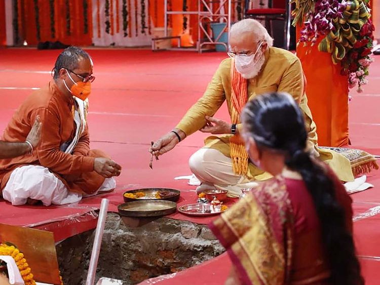 உத்தரப்பிரதேசம் மாநிலம் அயோத்தியில் ராமர் கோவிலுக்கான பூமி பூஜை கடந்த 5-ந் தேதி நடைபெற்றது. பிரதமர் மோடி பங்கேற்று அடிக்கல் நாட்டினார்.